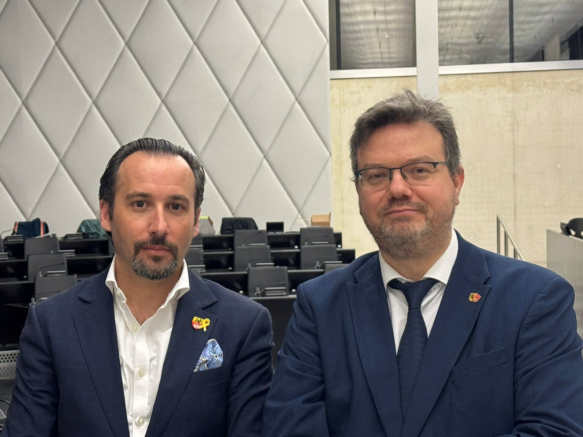 Foto: "Districtsraadsleden David Rosenberg en Kristof Luypaert bij de bespreking van het Meerjarenplan 2026-2031" (Foto: Vlaams Belang)